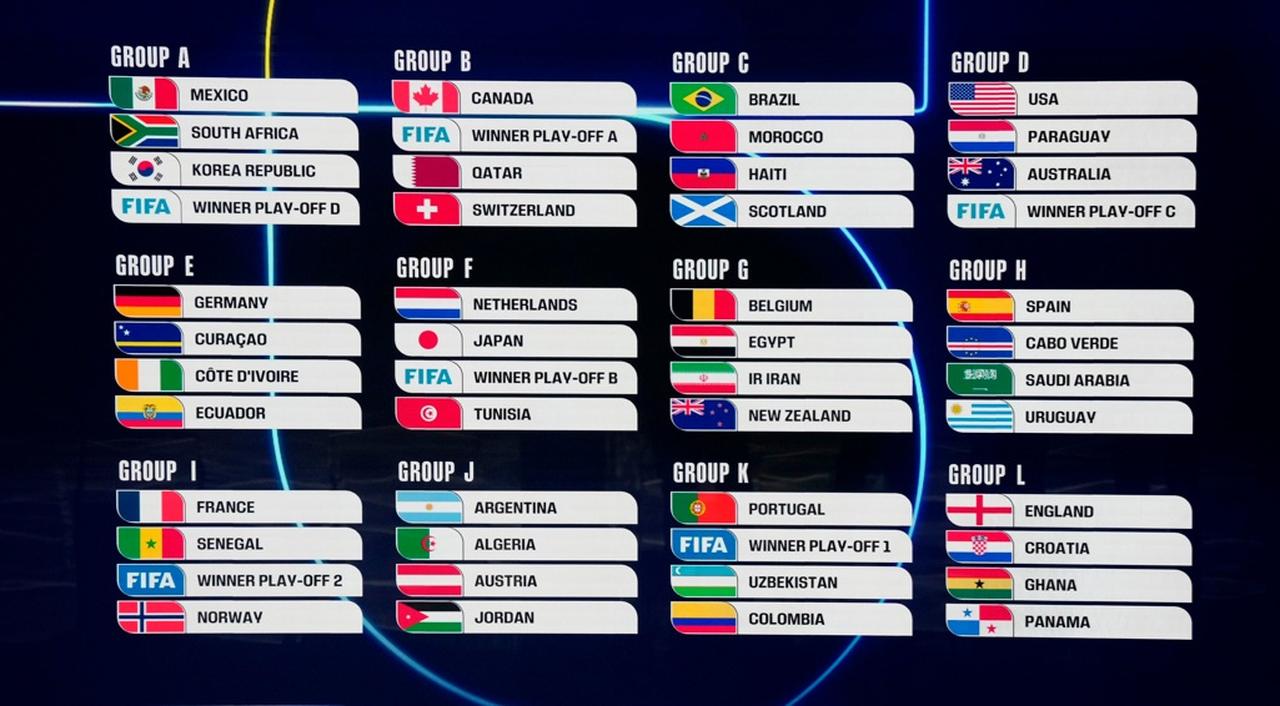 グループK:ポルトガル、FIFAプレーオフ1勝利チーム、ウズベキスタン、コロンビア