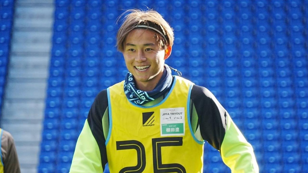 18日のトライアウトに参加した棚田。サンフレッチェ広島ジュニアユース、サンフレッチェ広島ユースで背番号10として成長し、2022年にトップチーム昇格を果たした。
