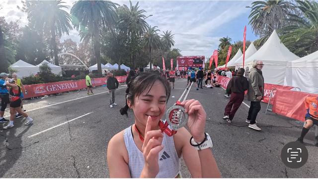 音楽がガンガン鳴り響く中、日本人の私のことまでも応援してくれて海外っぽいなあと思ったり、走った時間はとにかくワクワクしましたし、ランナーや観衆の皆さんがフレンドリーに接し、応援してくださる時間は非日常的でかけがえのないものでした。次の日は足を引きずりながらマラガ観光をしていたのですが、フィニッシャーメダルを首にかけて観光しました。すれ違う人たちが「Congratulations!」と声をかけてくださりとても嬉しかったです。