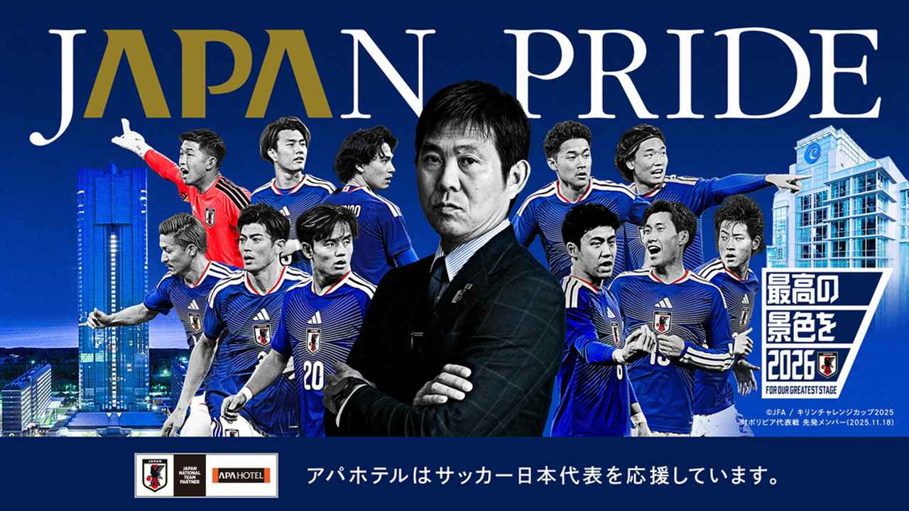 アパホテルは26日、サッカー日本代表監督の森保一が出演する新CM「JAPAN PRIDEともに世界一へ」篇を、3月28日から全国で放映すると発表した。2025年9月に公開された第1弾に続く第2弾で、日本から世界一を目指す姿勢を強く打ち出した内容となっている。